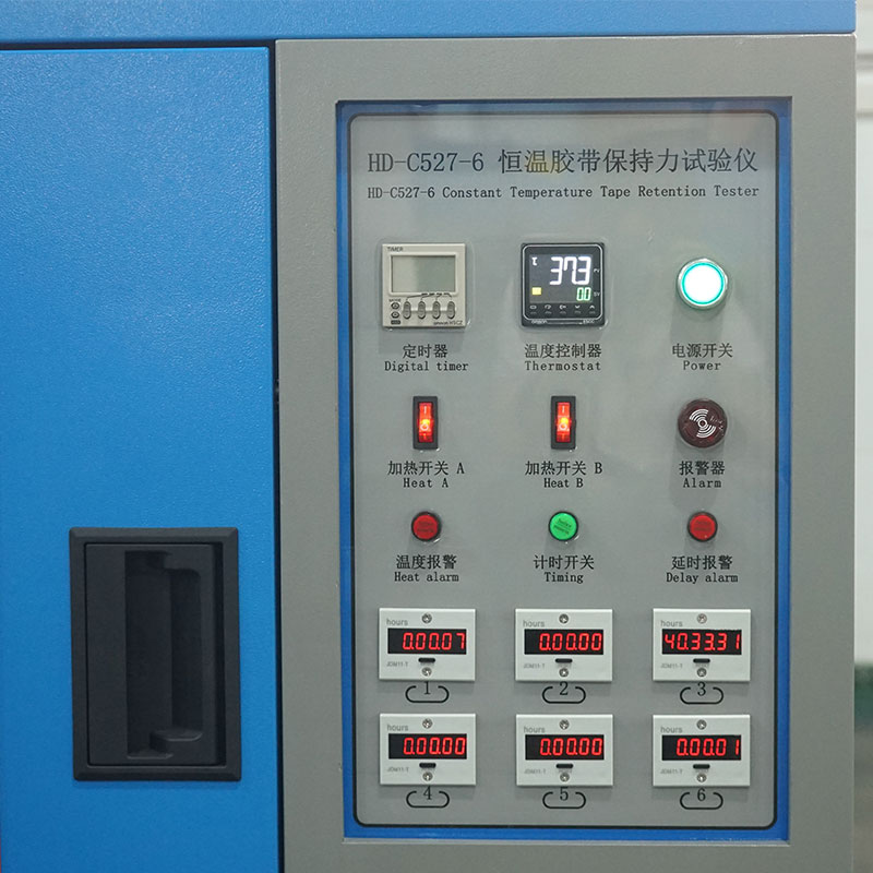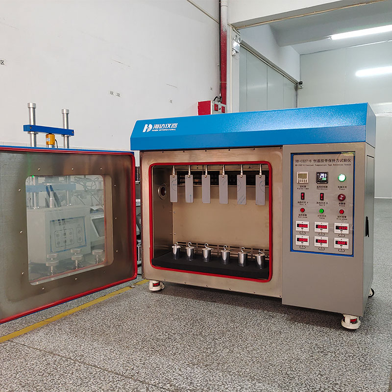 在一定的荷重下自动计时胶带所能保持的时间,以确认带粘着的时效,胶带粘着保持力试验若于本机箱内进行,因箱内之温度可设定,试片特定之环境中测试,即可了解不同的温度与粘着保持时间之关系。