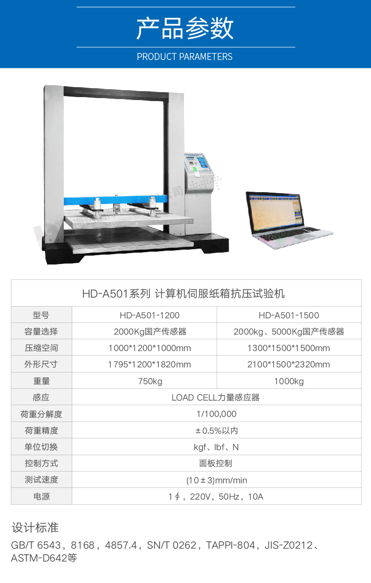 纸箱耐压试验机是检验纸箱或其它包装容器耐压强度直接的测试仪器,用于判定纸箱的抗压能力,并可做持压堆码的测试,试验的结果可作为工厂堆放成品包装箱高度的重要参考或是设计包装箱的重要依据。