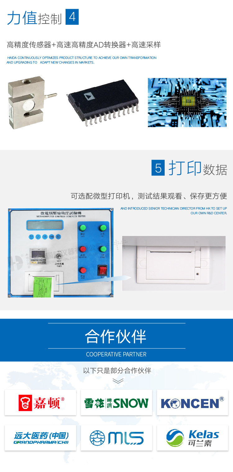 4.采用微电脑控制仪测量;能打印测试数据;高精度,低价格;高灵敏度,瞬时判定压溃并能自动停机。