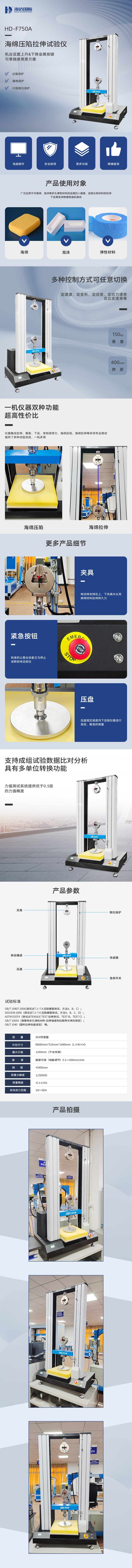 本产品为海绵压陷、拉伸试验和拉力机二合一产品,既可以做海绵、泡沫压陷及拉伸等试验,又可以做材料的拉伸及下压等试验,广泛应用于对海绵、泡沫等多孔弹性材料的压缩凹入硬度、压陷比和材料的拉伸、下压等各项物理性能的测试。