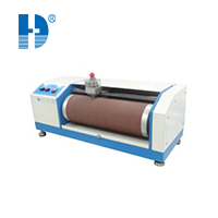 在规定的接触压力下和给定的面积上,试样与砂纸成一定角度,测定试样在一定级别的砂纸上进行摩擦而产生的磨耗性。砂纸包贴在滚筒的表面,试样紧压在带有砂纸的滚筒上,使试样沿滚筒横向移动。磨耗是在圆柱型试样的一端产生,测量试样的质量损失值,并由试样的密度计算体积磨耗量。