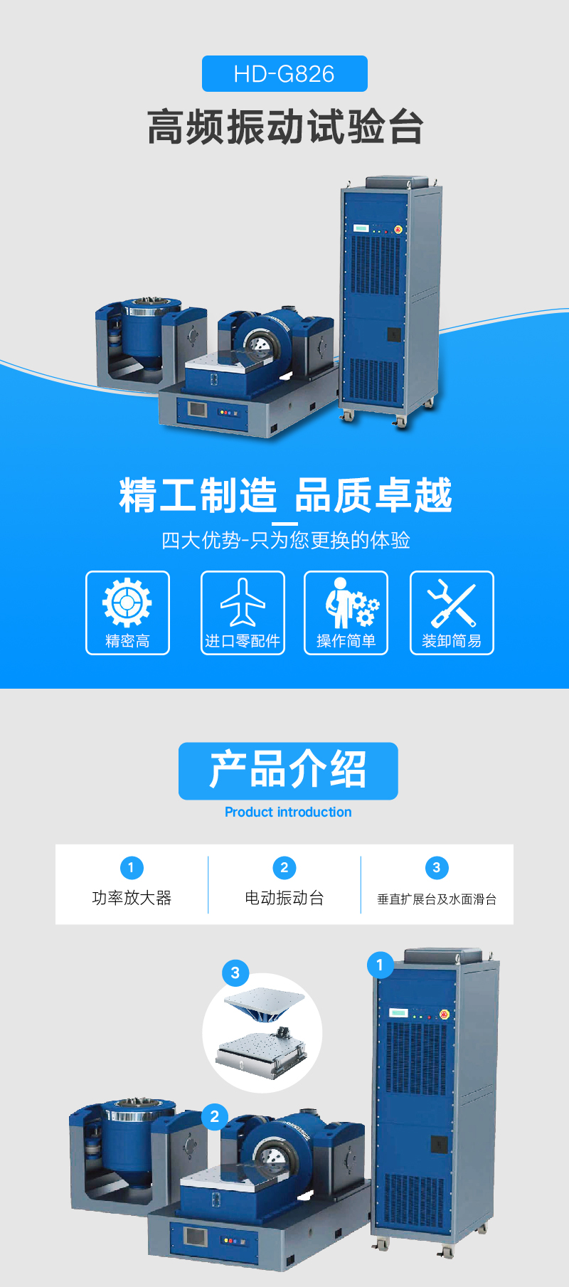 电动振动台在力学环境测试中必不可少,扮演着非常重要的角色,为现代化的产品设计、验证、生产提供了振动环境模拟试验平台。 ECON 利用*先进的振动控制器,基于闭环控制,推出了国内**性能的印 S 系列电动振动试验系统。该系统能够准确地复现真实的振动激励对产品可靠性的影响,广泛应用于航空航天、电子、汽车、包装运输、高校科学研究等行业。 风冷系列电动振动试验系统涵盖了单轴向到多自由度,推力从 300kgf 到 5000kgf 的多个型号电动振动台。该系列振动台具有可靠性高,工作频率宽,占地面积小,移动方便,操作维护简单等特点。 三轴电磁振动台