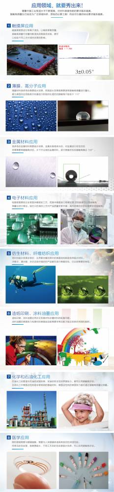 4.化学材料研究:防水与亲水性能材料研究探讨;表面活性与清洁剂的张力、湿性;黏性增强与附着表面能测量
