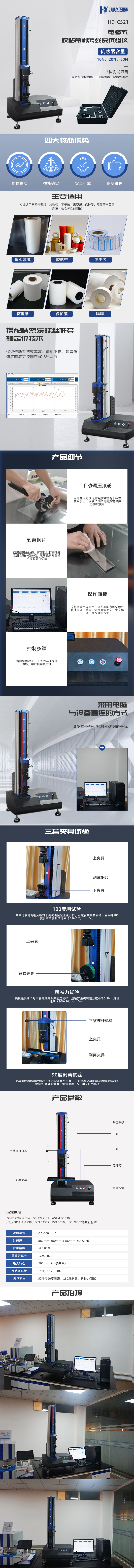一、HD-C521 电脑式胶粘带剥离强度试验仪产品功能 HD-C521 电脑式胶粘带剥离强度试验仪,专业适用于塑料薄膜、胶粘带、不干胶、离型纸、保护膜、隔膜等产品的剥离、粘合等性能测试。 二、HD-C521 电脑式胶粘带剥离强度试验仪测试应用 拥有丰富的应用,配置了不同的试样夹具供用户选择,可满足不同低粘材料的测试要求;针对用户材料的不同,还提供定制服务,满足不同用户的测试需求。 三、HD-C521 电脑式胶粘带剥离强度试验仪测试事项 1.测试环境:(23±1)℃温度、相对湿度(50±5)%; 2.测试设备和样品需在恒温环境中静放2个小时以上;