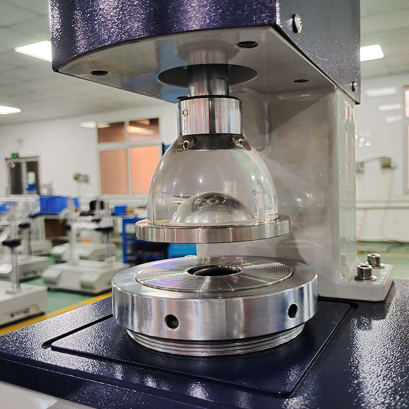 在仪器密封的油缸和压纸座的容腔内,装满甲基硅油作为压力传递的介质,当电机带动活塞匀速前进时,橡皮膜受到硅油的加压而突起,此时夹持在胶膜上方,被上下夹盘固定住的试样,均匀受力,直到试样破裂,处理芯片锁住*大压力值,通过液晶屏显示该压力值,此压力值即为本次试样的耐破度。