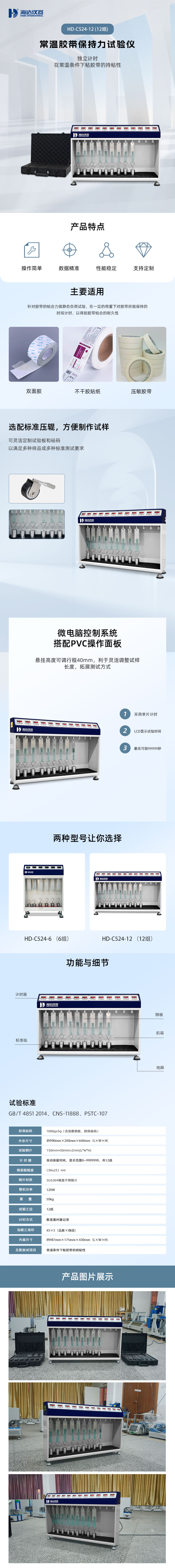 HD-C524-1 常温胶带保持力试验仪(10组),针对胶带的粘合力做静态负荷试验,在一定的荷重下对胶带所能保持的时间计时,以得到胶带粘合的耐久性。