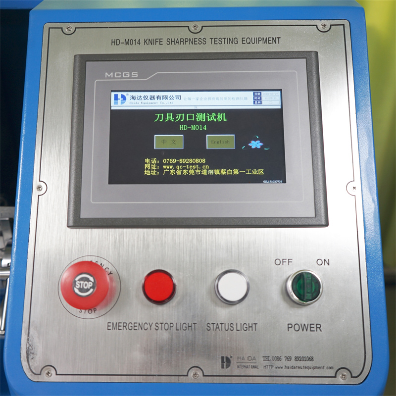 乐思体育HD-M013刀锋锐利度测试仪,测试刀具的锋利度值,PLC微电脑程序控制,操作简单,稳定准确,LCD触摸屏,操作界面友好,使用简便,具有割点自动定位、刀具自动复位切割功能,实时显示刀具切断测试材料所需的力值及切断力曲线。