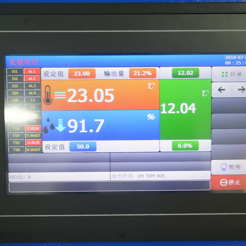 温、湿度控制器:采用维控触摸屏和西门子PLC控制模块,实现微电脑全自动控制,界面简洁直观,控制简单可靠。