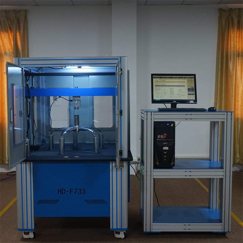 HD-F733办公椅底座垂直压力试验仪适用于办公椅五星脚基座承受过度的垂直压力测试,从而评估办公椅脚的耐压强度,提高产品的品质。