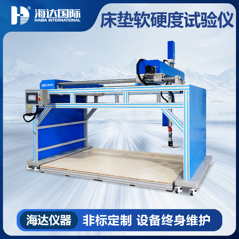 床垫贴合度及硬度试验仪用于对家庭、酒店、旅馆、饭店等场合使用的弹簧软床垫和发泡型床垫进行出厂成品检测,对床垫硬度和滞后损失率及贴合度进行测试,测试完成后根据测试评定试样的等级。