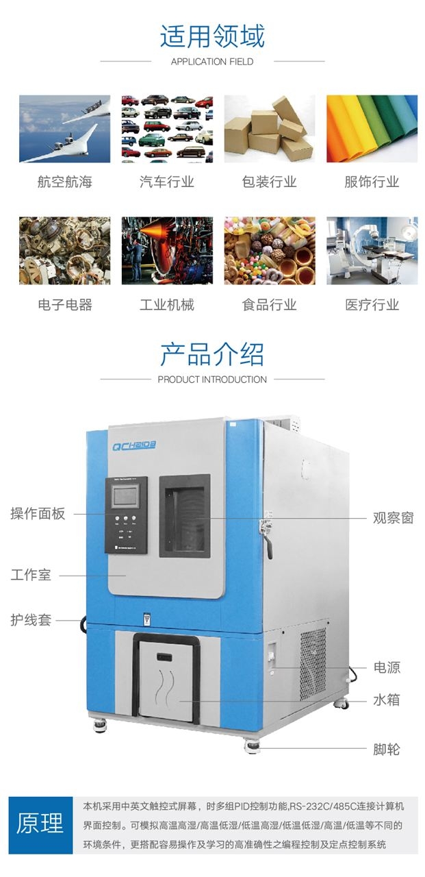 包装袋专用恒温恒湿试验箱厂家采用高稳定度之白金PT-100测温抵抗体,LCD中英文触控式/触摸式屏幕,附多组PID控制功能,配备RS-232C/485C连计算机接口控制,可模拟高温高湿/高温低湿/低温高湿/高温/低温等不同的环境条件,更搭配容易操作及学习的高准确性之编程控制及定点控制系统,提供*佳测试性能。广泛适应于产业界电子电器、**、塑料、五金、化工等行业,如:电子零件、汽车零件、笔记本等产品虚拟气候环境测试。