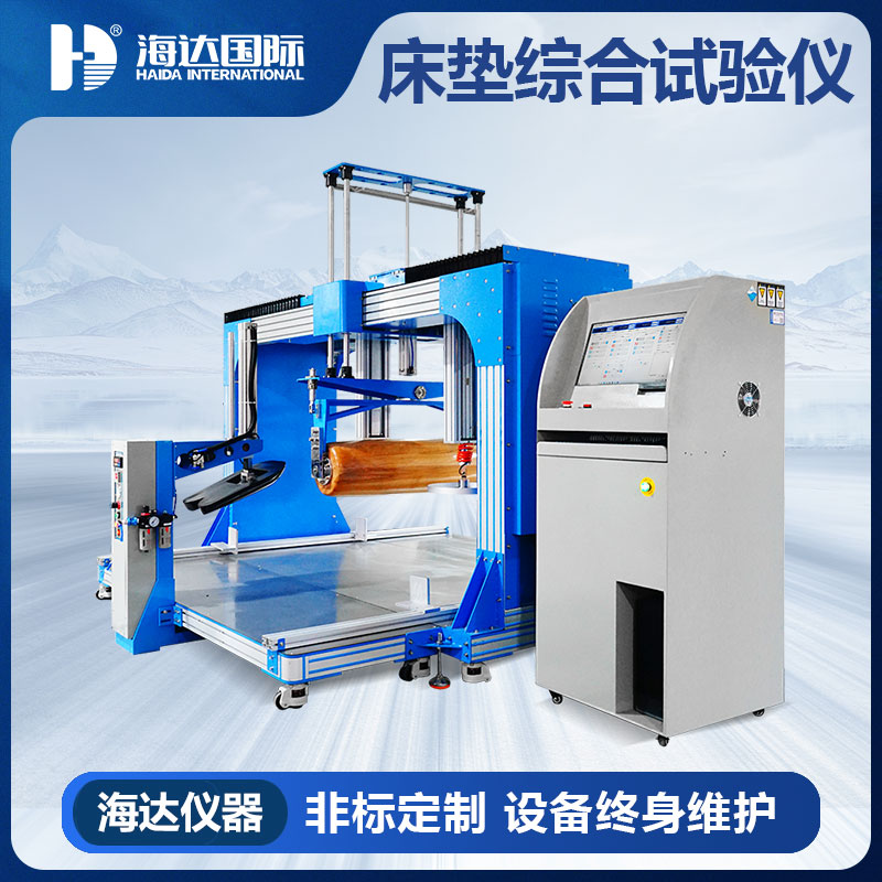 一、电脑滚筒式床垫耐久性试验机产品型号:HD-F764 二、电脑滚筒式床垫耐久性试验机产品介绍:HD-F764电脑滚筒式床垫耐久性试验机适用于强力弹簧床垫、普通弹簧床垫、泡沫床垫、棕纤维弹性床垫的综合力学测试。模拟人类睡眠中不断的翻滚而设计的机器,采用一个滚动式加载模块水平放置在床垫规定的加载部位,以一定频率滚动,对床垫进行往复加载,以检验床垫对长期重复性滚动载荷的承受能力。同时配备了测高、软硬度、滚动疲劳的测试;符合国家GB、EN、ASTM等多个测试标准要求。 三、电脑滚筒式床垫耐久性试验机设计标准:QB/T 1952.2-2011、GB/T 26706-2011、EN 1957-2012、ASTM F1566-2014等。 四、电脑滚筒式床垫耐久性试验机产品特点: (一)硬件特点 1、试验仪采用壁厚5mm高强度铝合金型材组合框架,底板采用上等三合板制作; 2、配置两套垂直测试机构,采用电缸驱动,动力采用步进电机,确保测试数据准确性、可靠性; 3、配置一套滚筒装置,采用电葫芦升降到合适的测试高度,滚筒转动时模拟人类睡眠中不断 翻滚; 4、配备三套加载垫:圆柱形压头、球缺形压头和扁平压头; 5、加载装置采用全导轨导向移动,加载点精准;具有操作简单、日常维护少等特点,能够自动 化运行,直至试验完成。 (二)软件特点 1.采用自主研发PLC程序控制,功能界面简洁、美观,算法数据直观,操作便捷; 2.采用SMC进口电动缸,位移、速度、推力控制精准,稳定可靠; 3.本机可通过USB端导出试验界面,可自定义设置试验参数,试验完成自动停机; 4.软件具有故障报警提示、断电记忆功能、实时监控功能;可基本实现无人看管试验,试验完成自动停止该项试验,同时自动保留试验结果; 5.软件配有到位检测、限位保护、过载保护等设计,保证操作更**。 五、电脑滚筒式床垫耐久性试验机主要技术参数: