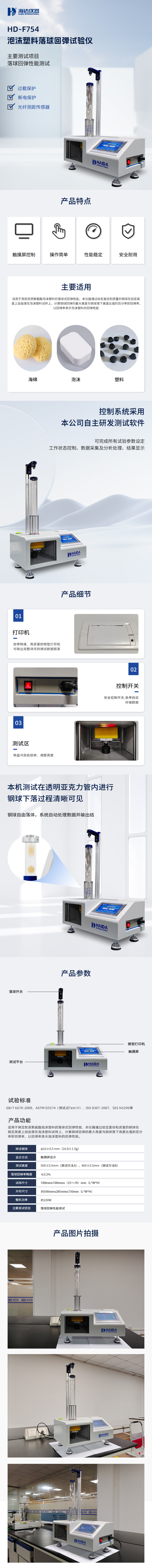 2、本仪器通过给定直径和质量的钢球在规定高度上自由落在泡沫塑料试样上,计算钢球回弹的高度与钢球落下高度比值的百分率既回弹率,以回弹率表示泡沫塑料的回弹性能。