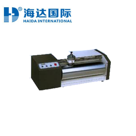 一、产品简介: 本机运用旋转的磨轮垂直压在试样上,以一定负荷,一定速度,一定时间对试样进行磨耗试验,测*试样磨痕长度,适用于检验成鞋鞋底和成型底(片)的耐磨性能。 二、设计标准:ISO-4649 1985 B.1、GB/T 3903.2-94、 DIN-53516 、ASTM D5963; 三、主要技术参数: 1. 试样:直径(16±2)mm,厚度*少6mm,试样至少3个 2. 负荷砝码:2N±0.1N,5N±0.1N,10N±0.2N 3. 试验时间:20min; 4. 磨耗行程: 40m±0.2m,20m±0.1m相当于滚轮圈数84(42) 5. 磨轮为∮20士0.1X4士0.1mm的T12钢磨轮,具有72个齿,齿角为900士50,齿尖宽度为0.2士 0.05mm,齿尖粗糙度R,=3.2pm,硬度HRC≥55,同轴度为0.03mm; 6. 滚轮直径:150mm±0.2mm,长度约500mm 7. 夹具横向位移量:4.2mm±0.04mm /滚轮每圈 8. 滚轮转速:40rpm±1rpm 9. 试样夹持器:直径15.5-16.3mm可调,并可调节试样突出距离2±0.2mm 10. 夹持器轴线:与垂直线的夹角为3º,与滚轮纵轴的距离±1mm之内.滑动臂与夹持器无振动; 11. 砂纸安装对接间隙:不大于2mm 产品标准配置 台式小钻床一台,标准冲刀一把,VSM 60号粒度砂纸二张,BAM标准胶一块、50*70mm硬毛刷; 可选配置: 1) 密度直读天平一台(量程151g, 精密度:0.001g,含比重架等附件工具一套) 2) VSM 60号粒度砂纸 3) BAM 标准胶 4) 台式小钻床 5) 标准冲刀 6) 硬毛刷 ¢16mm标准胶3块 砝码:2.5N/5N 各1个 金属打磨头1个2mm金属厚度块 1个 托盘 1个砂纸 1张